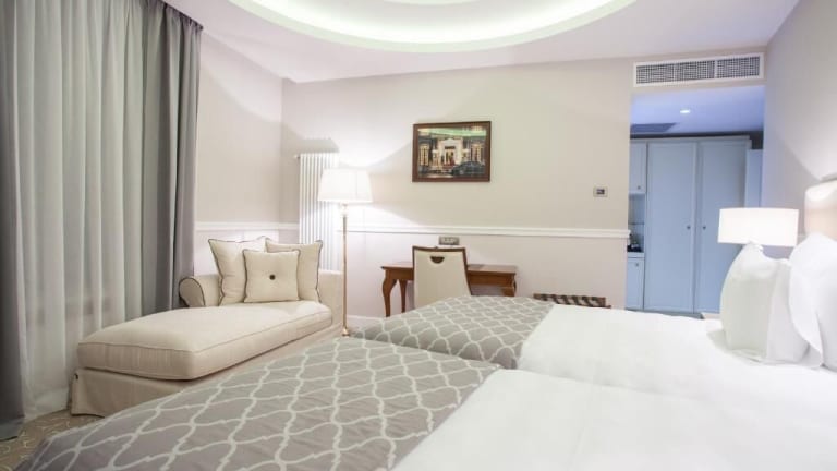 Das Hotel verfügt über 169 klimatisierte Zimmer, die modern und komfortabel eingerichtet sind. Jedes Zimmer ist mit einem Flachbild-Kabel-TV, einer Minibar, Tee- und Kaffeezubehör, einem Schreibtisch, einem Safe und einem eigenen Bad mit Dusche ausgestattet. Einige Zimmer bieten zudem einen Panoramablick auf die Stadt.