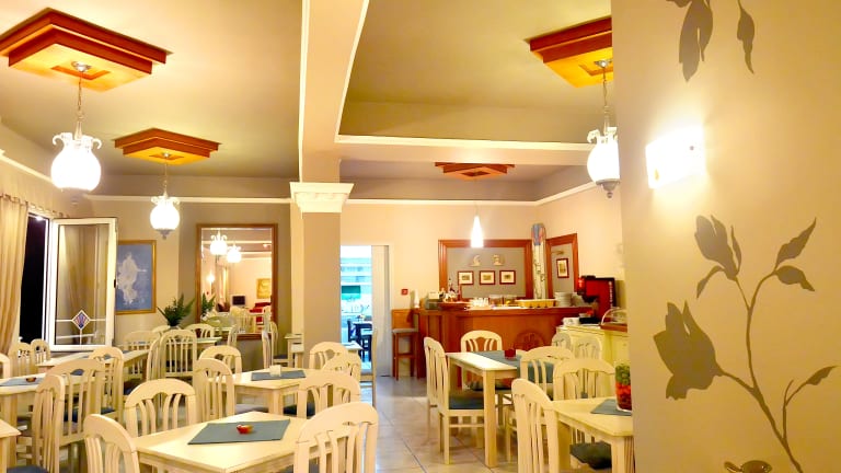 Im Hotel Ioni können Sie Halbpension buchen und sich auf ein reichhaltiges Frühstück und ein schmackhaftes Abendessen freuen. Das Restaurant des Hotels bietet eine vielfältige Auswahl an Gerichten für jeden Geschmack.