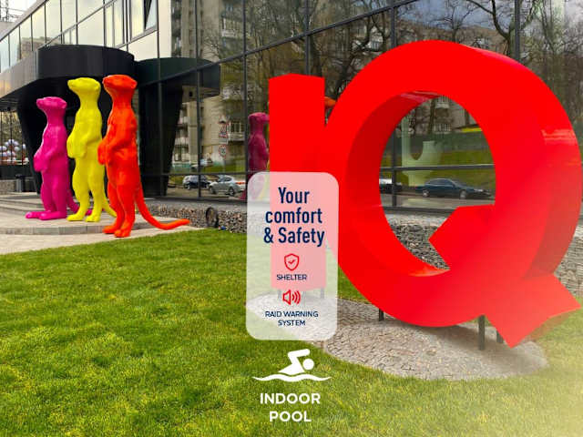 Das IQ Hotel in Kiew bietet seinen Gästen einen modernen und komfortablen Aufenthalt. Die Zimmer sind hell und minimalistisch eingerichtet und verfügen über eine Klimaanlage und kostenfreies WLAN. Das Hotel liegt zentral und in der Nähe von öffentlichen Verkehrsmitteln. Ein Supermarkt und verschiedene Cafés befinden sich im gleichen Gebäude. Ein Außenpool bietet Entspannung und Erfrischung.