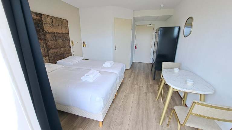 Das Seehotel Oostkapelle bietet verschiedene Zimmerkategorien, darunter Zimmer im Erdgeschoss mit eigener Veranda und Zimmer auf höheren Etagen mit Balkon und Blick auf die Landschaft oder den Wald. Die Zimmer sind gemütlich und komfortabel eingerichtet und bieten eine angenehme Atmosphäre für einen erholsamen Aufenthalt.