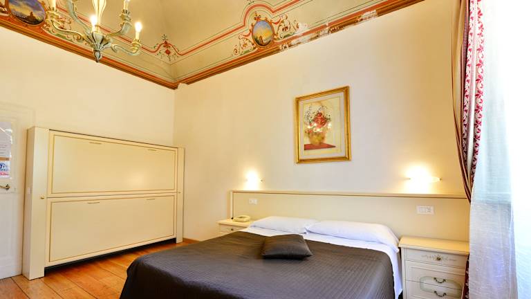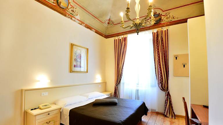 Die Zimmer im Hotel Iris sind geräumig und geschmackvoll eingerichtet. Sie zeichnen sich durch ihre Deckenfresken und Wandgemälde aus, die eine einzigartige Atmosphäre schaffen. Jedes Zimmer verfügt über ein eigenes Badezimmer mit Dusche.