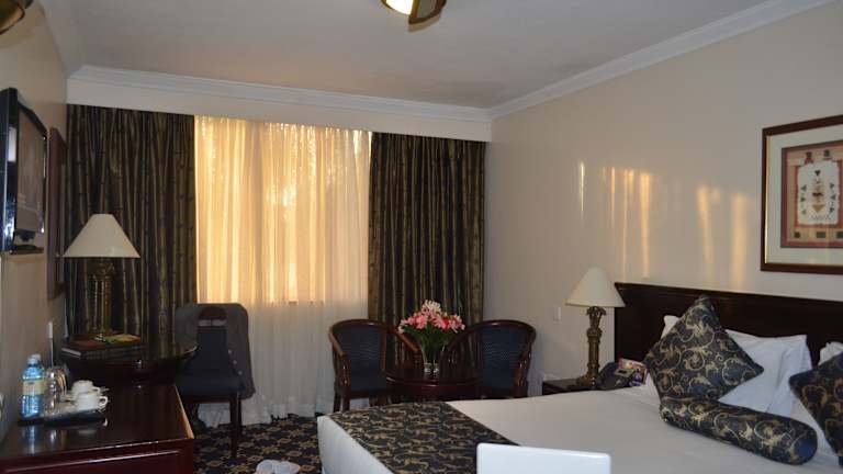 Die 128 Zimmer im Jacaranda Hotel Nairobi bieten einen angenehmen Aufenthalt mit verschiedenen Annehmlichkeiten. Jedes Zimmer verfügt über einen Sitzbereich, einen Flachbild-Sat-TV und einen Safe. Das eigene Bad ist mit einer Badewanne ausgestattet. Einige Zimmer bieten zudem einen Blick auf den Garten. WLAN ist in den öffentlichen Bereichen des Hotels kostenlos verfügbar.