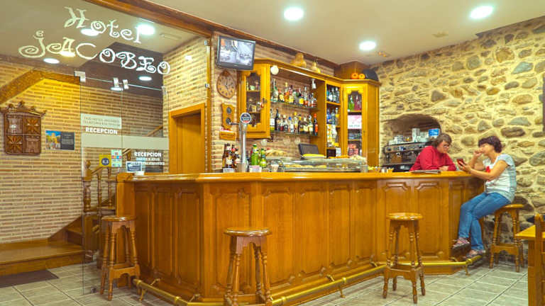 Das Hotel Jacobeo bietet ein leckeres Frühstücksbuffet mit regionalen Produkten. In der Umgebung finden Sie eine Vielzahl von traditionellen Bars und Restaurants, in denen Sie lokale Spezialitäten genießen können.