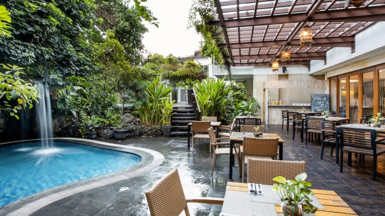 Das Jambuluwuk Maliboro Hotel Yogyakarta verfügt über ein Restaurant, einen Café und eine Bar. Im Restaurant können Gäste ein nahrhaftes Frühstück genießen, das täglich serviert wird. Das Restaurant bietet auch Mittag- und Abendessen mit indonesischen und internationalen Gerichten.