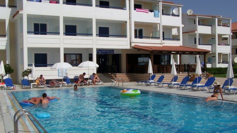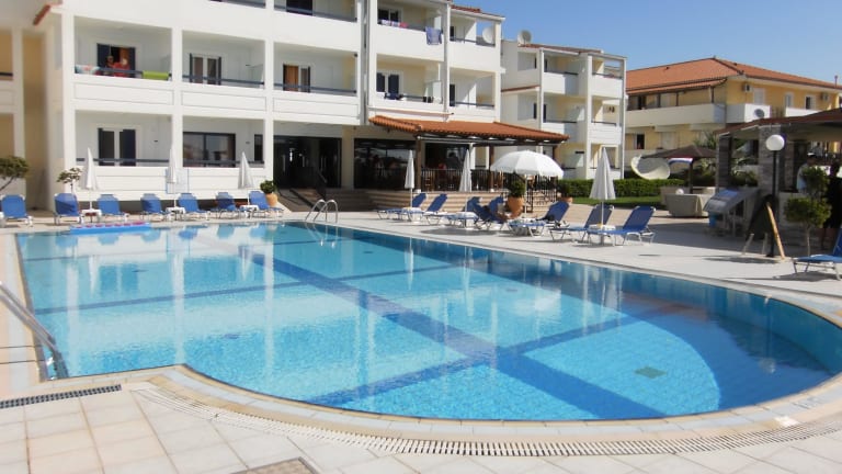 Das Jannos Beach Hotel befindet sich in Laganas, nur wenige Schritte vom Strand entfernt. In der Umgebung finden Sie zahlreiche Restaurants, Bars und Geschäfte. Der Strand Kalamaki ist ebenfalls in der Nähe und der internationale Flughafen Zakynthos ist nur 2 km entfernt.