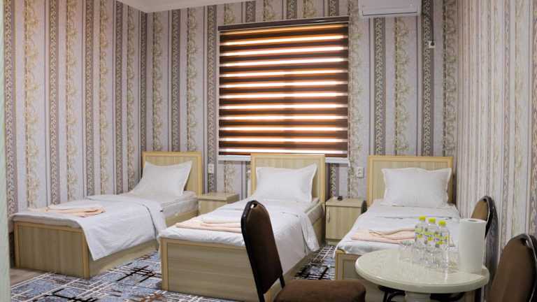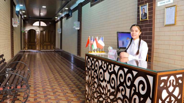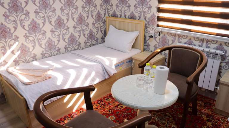 Das Hotel Jasmina liegt in Samarkand und bietet eine günstige Lage, um die Stadt und ihre Sehenswürdigkeiten zu erkunden. In der Nähe finden Sie den internationalen Flughafen Samarkand, der nur 6 km entfernt ist. Dies erleichtert Ihre An- und Abreise. Die Umgebung bietet auch verschiedene kulturelle Attraktionen und historische Stätten, die Sie erkunden können.