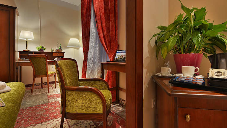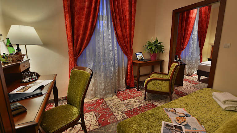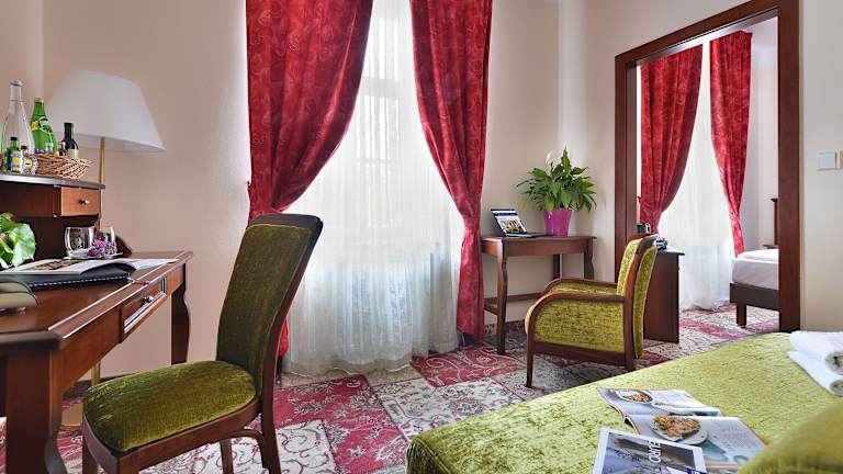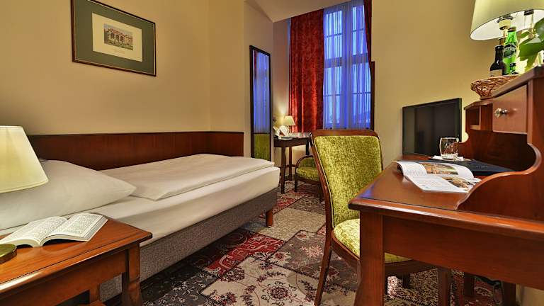Das romantische Cityhotel befindet sich in unmittelbarer Nähe der Prager Burg im Zentrum des Hradschins. Von hier aus können Gäste die malerischen Winkel der Neuen Welt, die Kirche Loreta und das Strahov-Kloster erkunden. Die Lage des Hotels ermöglicht auch Spaziergänge durch die Prager Burg, die Neruda-Gasse sowie Besuche von Restaurants und Cafés. Öffentliche Verkehrsmittel sind nur wenige Meter entfernt und der Flughafen Ruzyně ist leicht zu erreichen.