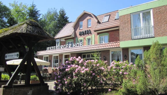 Das Hotel Jesteburger Hof befindet sich in Jesteburg und bietet eine günstige Lage, nur eine kurze Fahrt von der Autobahn A7 entfernt. In der Umgebung gibt es schöne Landschaften und das Naturschutzgebiet Lüneburger Heide ist nur 10 km entfernt. Die Stadt Hamburg ist ebenfalls gut erreichbar und liegt nur 30 km entfernt.