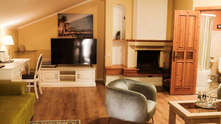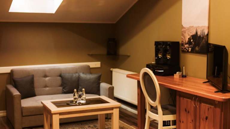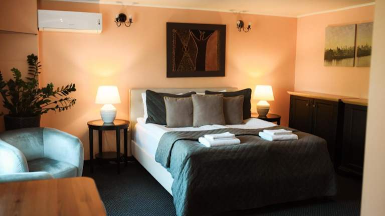 Die Zimmer im Hotel Jolanta sind komfortabel und gemütlich eingerichtet. In warmen Farben gehalten und mit Holzmöbeln ausgestattet, bieten sie eine entspannte Atmosphäre für die Gäste. Jedes Zimmer verfügt über einen TV, einen Schreibtisch und kostenfreies WLAN. Die meisten Zimmer haben auch ein eigenes Bad mit Bademänteln und einer Dusche.