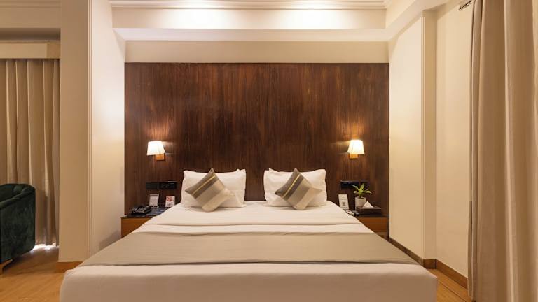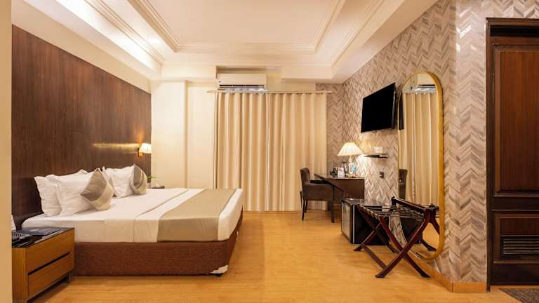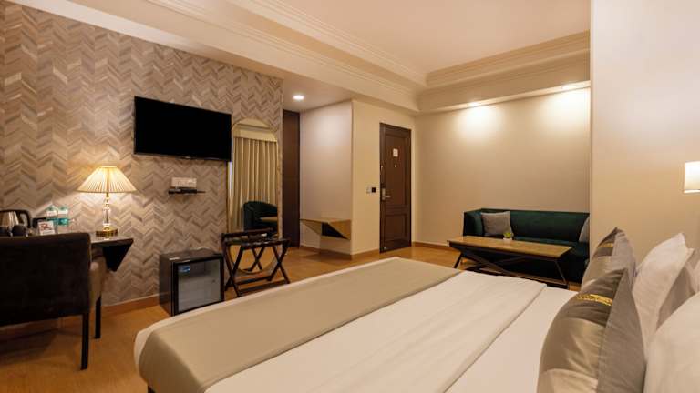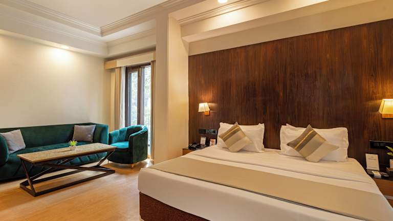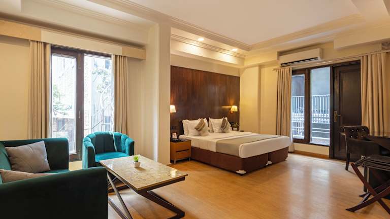 Die klimatisierten Zimmer im Hotel The Orion - Greater Kailash sind geräumig und verfügen über einen Balkon und Holzböden. Jedes Zimmer ist mit einer Minibar, einem Flachbild-Sat-TV und einem DVD-Player ausgestattet. Das eigene Badezimmer bietet einen Haartrockner, kostenfreie Pflegeprodukte und eine Dusche. Ein Essbereich und Zugang zur Executive Lounge sind ebenfalls vorhanden.