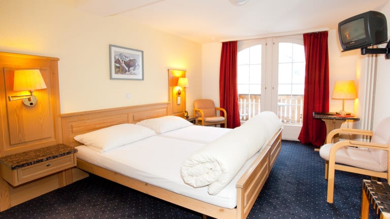 Die Zimmer im Hotel Jungfrau sind gemütlich und komfortabel eingerichtet, und die südseitigen Zimmer verfügen über einen Balkon mit herrlichem Bergblick. Die Zimmer sind mit Annehmlichkeiten wie Klimaanlage, TV und WLAN ausgestattet.