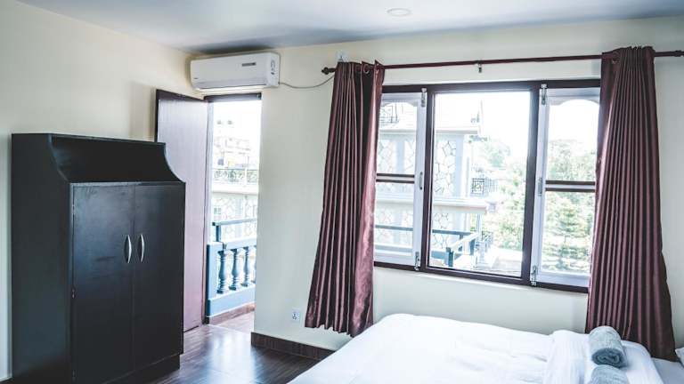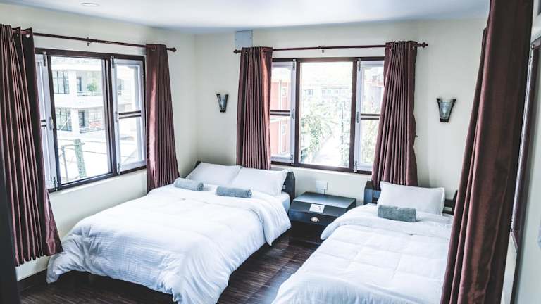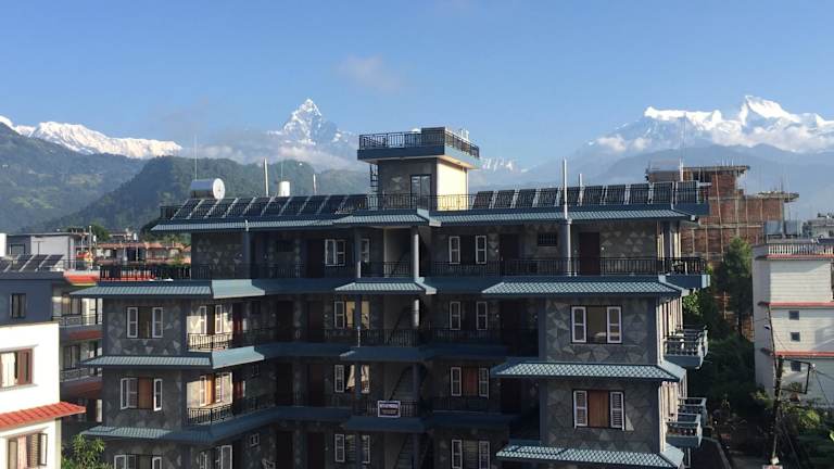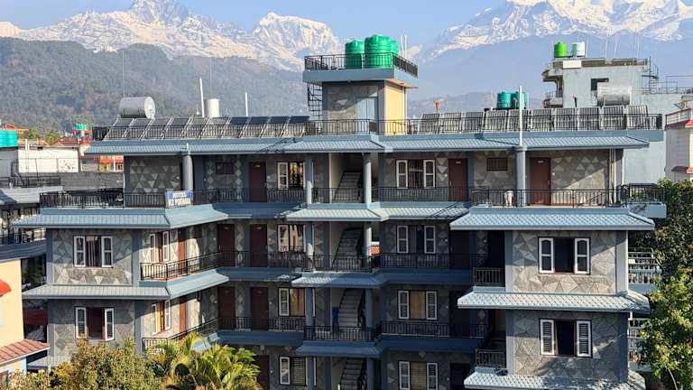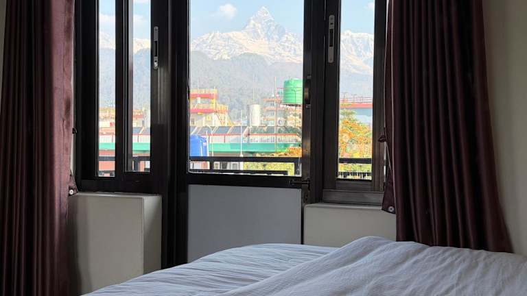 Das Hotel K2 Pokhara bietet komfortable Zimmer mit eigenem Bad. Einige Zimmer verfügen über eine Terrasse mit herrlichem Bergblick, während andere einen Balkon oder Stadtblick bieten. Die Zimmer sind gemütlich eingerichtet und bieten alles, was Sie für einen angenehmen Aufenthalt benötigen.