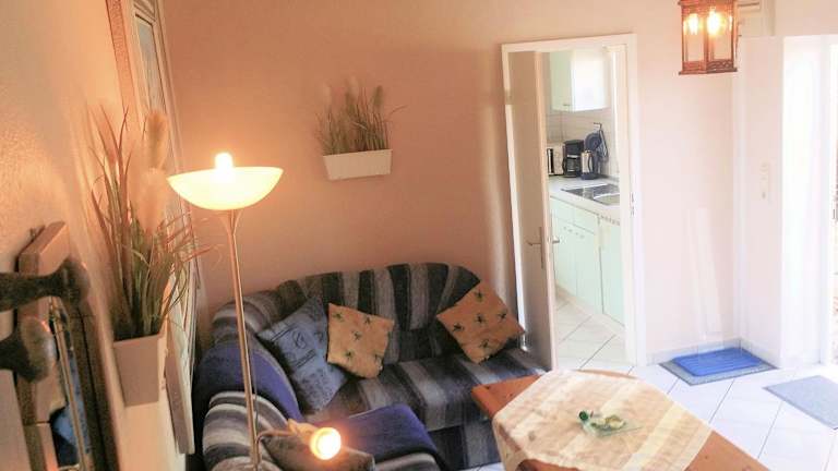 Die Apartments im Käpt'n Böff bestechen durch ihre charmante Einrichtung mit holzvertäfelten Decken und dekorativen Pflanzen. Jedes Apartment verfügt über ein gemütliches Wohnzimmer mit einem Flachbild-TV und eine kleine Terrasse mit Blick auf den schönen Garten. Die voll ausgestattete Küche ermöglicht es den Gästen, ihre eigenen Mahlzeiten zuzubereiten und sich wie zu Hause zu fühlen.