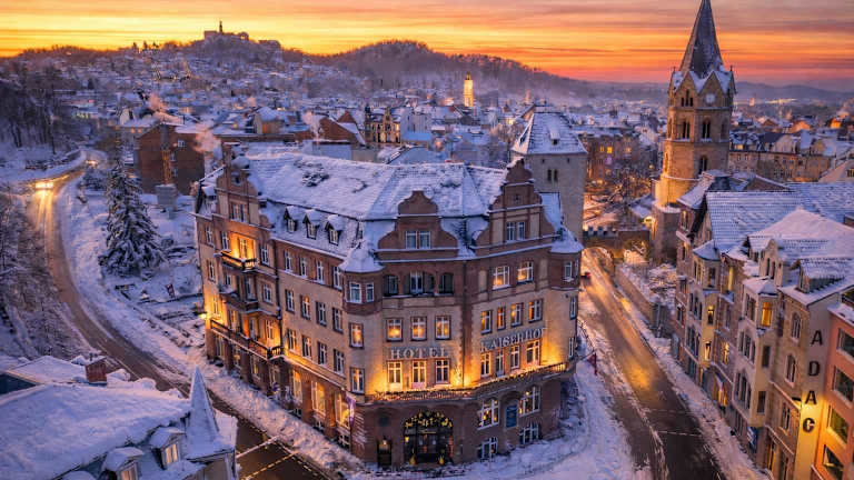 Herzlich Willkommen im Hotel Kaiserhof in Eisenach Im Herzen der historisch- und kulturell reichen Stadt Eisenach, direkt am Nicolaitor liegend, vereinigt der Kaiserhof 100-jährige Tradition mit moderner Unternehmensführung und Service von Herzen! Die 64 komfortablen Zimmer und Räumlichkeiten für Tagungen und Feiern verteilen sich auf 4 Etagen des Hauses und haben somit dem Geschäftsreisenden als auch dem privaten Städtereisenden sehr viel zu bieten. Unser Herz schlägt dafür, unseren Gästen den Aufenthalt im Kaiserhof bis ins kleinste Detail so angenehm und unvergesslich, wie möglich zu gestalten. Wir freuen uns auf Ihre Anfrage. Auf bald im Kaiserhof!