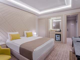 Die Zimmer im Hotel Kaleli sind modern und komfortabel eingerichtet. Sie verfügen über eine Klimaanlage und kostenfreies WLAN sowie einen TV und einen Kühlschrank. Die Zimmer sind in sanften Tönen gehalten und mit Teppichböden ausgestattet.