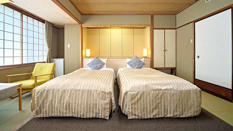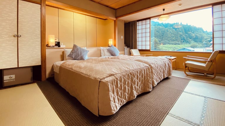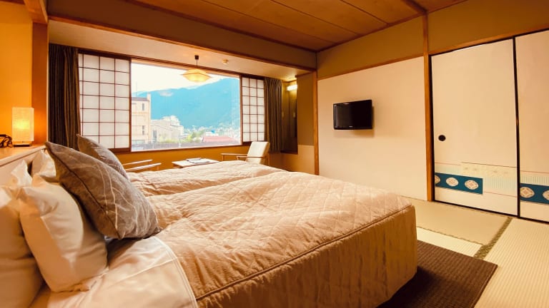 Die Zimmer im Hotel Kameya sind im traditionellen japanischen Stil eingerichtet und bieten einen herrlichen Blick auf die umliegenden Berge. Sie sind klimatisiert und verfügen über Tatamiböden und japanische Futonbetten. Jedes Zimmer ist mit einem TV und einem Wasserkocher ausgestattet. Im eigenen Badezimmer finden Sie Hausschuhe vor.