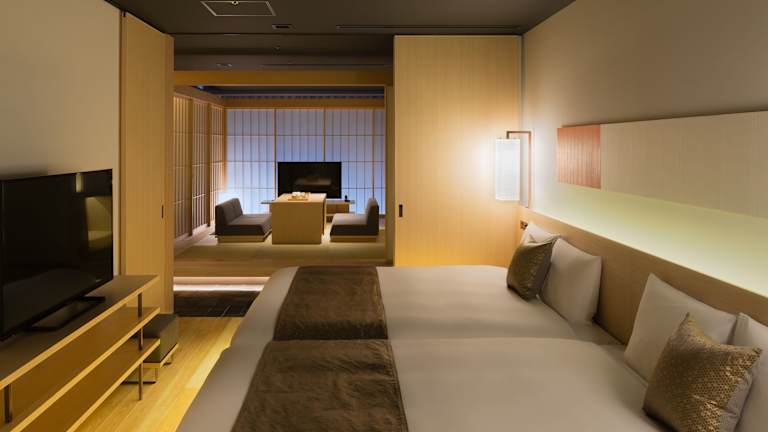 Die Zimmer im hotel kanra kyoto sind geräumig und bieten eine einzigartige Mischung aus traditionellem japanischem, modernem und westlichem Dekor. Die Zimmer verfügen über kostenfreies WLAN, japanische Tatami-Böden und einen Sitzbereich im japanischen Stil. Jedes Zimmer ist mit traditionellen Keramiken von Kyoto Kiyomizu-yaki ausgestattet und verfügt über ein eigenes Bad mit Holzbadewanne und kostenfreien Pflegeprodukten.