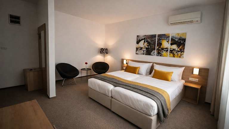Das Hotel Kapitol befindet sich in der Stadt Most, nur 1 km von der beeindruckenden Burg Hněvín entfernt. Die zentrale Lage ermöglicht es Ihnen, die Sehenswürdigkeiten der Stadt bequem zu erkunden. In der Umgebung finden Sie auch verschiedene Geschäfte und einen Friseur. Für Aktivurlauber bietet die Umgebung zahlreiche Möglichkeiten zum Radfahren.