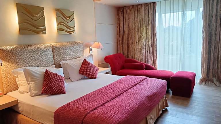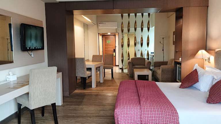 Die 79 Zimmer des Hotels sind geräumig und klimatisiert. Sie verfügen über ein eigenes Bad und einen gemütlichen Sitzbereich. Die Zimmer sind einfach eingerichtet, aber dennoch elegant und mit frischer Bettwäsche ausgestattet. Einige Zimmer bieten zusätzliche Annehmlichkeiten wie einen Essbereich, eine Minibar und Kaffee-/Teezubereitungsmöglichkeiten.