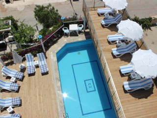 Das Kelebek Hotel in Kalkan bietet seinen Gästen eine einzigartige Unterkunft auf einem Hügel mit Blick auf den Hafen. Mit seinem charmanten Design, dem Mosaikpool und der Dachterrasse mit Meerblick ist dieses Hotel ein perfekter Ort für Paare, die nach Entspannung und einer gechillten Atmosphäre suchen. Die Zimmer und Apartments sind traditionell eingerichtet und bieten allen Komfort, den Sie benötigen. Genießen Sie türkische Spezialitäten im Restaurant oder leichte Snacks an der Poolbar. Die Lage des Hotels ist ideal, nur wenige Meter vom Stadtzentrum und dem Strand entfernt. Kostenlose Parkplätze stehen in der Nähe des Hotels zur Verfügung.