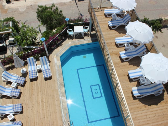 Im Restaurant des Kelebek Hotels werden türkische Spezialitäten à la carte serviert. Das Frühstück wird auf der Dachterrasse serviert, von der Sie einen herrlichen Blick auf das Mittelmeer haben. An der Poolbar können Sie tagsüber leichte Snacks genießen.