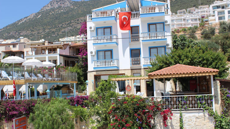 Das Kelebek Hotel befindet sich in zentraler Lage in Kalkan, umgeben von Restaurants, Cafés, Bars und Geschäften. Der nächste Strandabschnitt der türkischen Ägäis ist nur etwa 400 Meter entfernt. Mit den Dolmus-Verbindungen erreichen Sie den berühmten Strand von Patara in etwa 30 Minuten. Historische Stätten wie Xanthos oder Letoon sind ebenfalls in kurzer Fahrzeit erreichbar. Der Flughafen Dalaman liegt etwa 125 km entfernt und der Flughafen Antalya etwa 180 km.