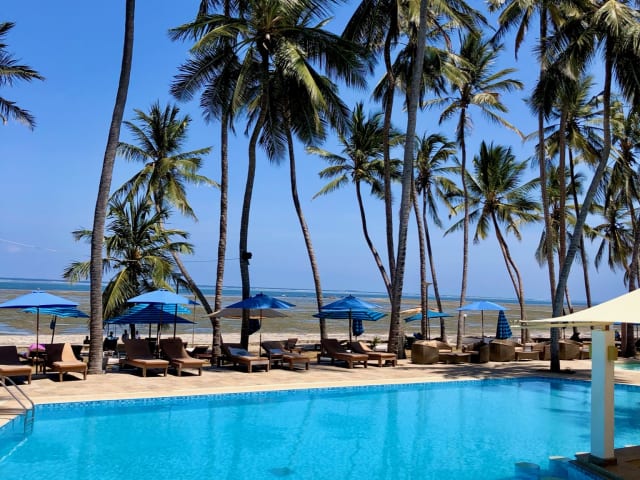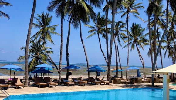 Das Kenya Bay Beach Hotel befindet sich am Bamburi Beach, umgeben von üppigen tropischen Gärten mit Bougainvillea-Sträuchern und Frangipani-Bäumen. Der Strand ist nur wenige Schritte entfernt und lädt zu entspannten Spaziergängen entlang des Indischen Ozeans ein. Das Hotel liegt etwa 15 km vom Flughafen und 10 km vom Zentrum von Mombasa entfernt. Einkaufsmöglichkeiten, Restaurants und Unterhaltungsmöglichkeiten sind in etwa 15 Gehminuten erreichbar. In der Nähe befindet sich auch ein Golfplatz, der nur 3 km entfernt liegt.