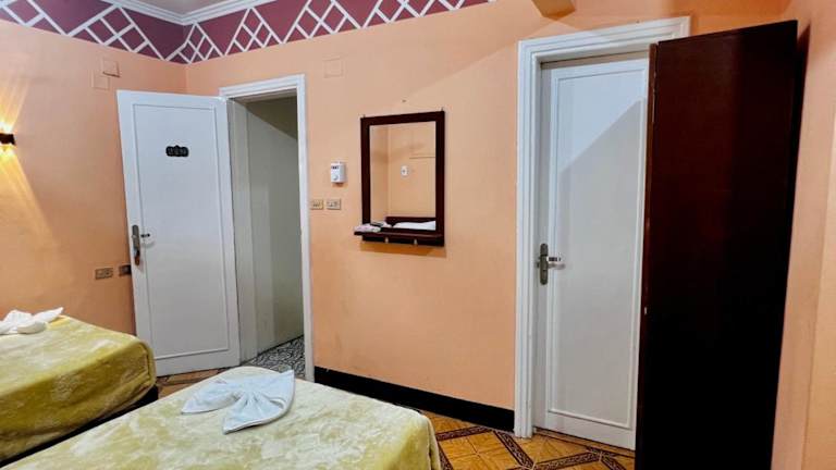 Die Lage in der Nähe vom Nil und den Touristenmeile. Leider finden sich hier im vergleich zu den teureren alternativen kaum Gäste ein, entsprechen ist auch das Ambiente. Kein Wifi im Zimmer, die Zimmer sind klein, eng und nicht besonders sauber. Der Whirlpool läuft schon längst nicht mehr und die Terrasse hat weder einen Ausblick noch einen Service. Immerhin das Frühstück bekommt einen Pluspunkt, hier wird man bedient und es ist reichaltig.