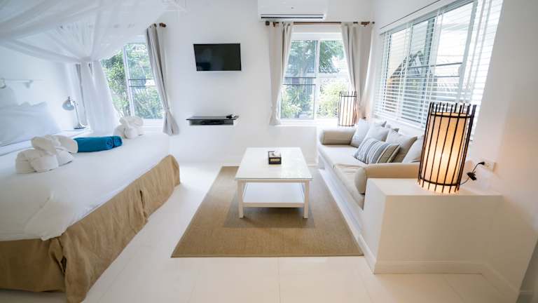 Die Unterkünfte im King's Garden Resort sind komfortabel und stilvoll eingerichtet und verfügen über Annehmlichkeiten wie Klimaanlage, Flachbild-Kabel-TV und Balkon. Einige Zimmer bieten einen herrlichen Blick auf das Meer und den Garten. Jede Unterkunft verfügt über einen gemütlichen Sitzbereich und einen Kühlschrank, um Ihren Aufenthalt so angenehm wie möglich zu gestalten.