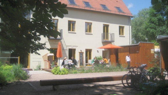 In der unberührten Natur der Ilm-Aue erwartet Sie das liebevoll restaurierte Hotel Café Kipperquelle in ruhiger Lage. Haus und Garten öffnen sich direkt zur vielfältigen Wiesenlandschaft; zugleich ist unser Haus durch den Goethepark direkt mit der historischen Altstadt Weimars verbunden. 3,5 km sind es in die Innenstadt, in 50 min fußläufig durch den malerischen Ilm Park zu erreichen oder in 15 min mit dem Fahrad oder dem Bus der vor dem Haus abfährt. Vom Bahnhof (4.5 km) direkt mit der Buslinie 1 zu erreichen.