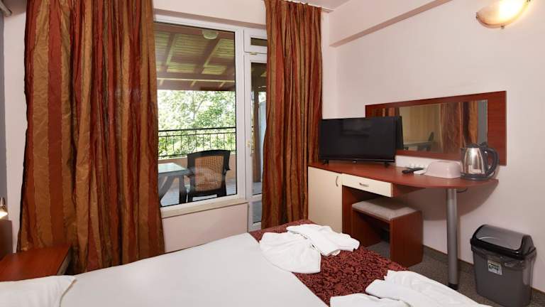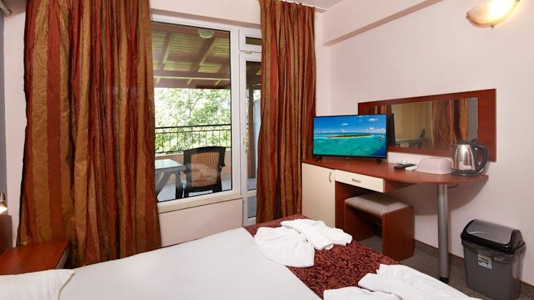 Die klimatisierten Zimmer im Guesthouse Kirov sind komfortabel und bieten alles, was Sie für einen angenehmen Aufenthalt benötigen. Jedes Zimmer verfügt über einen Kleiderschrank, einen Flachbild-TV, ein eigenes Badezimmer und einen Balkon mit Blick auf den Garten. Bettwäsche und Handtücher werden gestellt und ein Kühlschrank steht ebenfalls zur Verfügung.
