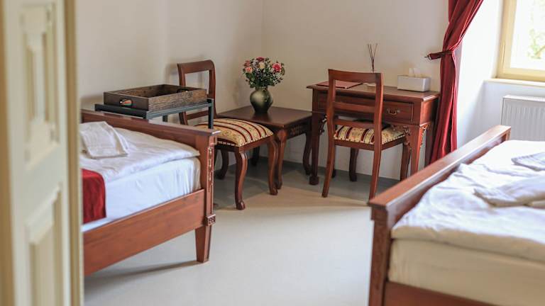 Die Gästezimmer im Hotel Klášter Želiv sind ausgestattet mit einem Kleiderschrank, einem Flachbild-TV, einem eigenen Badezimmer sowie Bettwäsche und Handtüchern. Die Zimmer bieten zudem eine Minibar und sind auch als Familienzimmer buchbar.