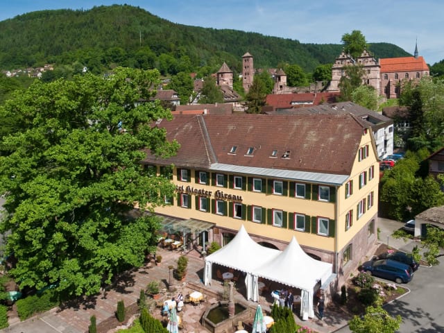 Herzlich willkommen im 4-Sterne Flair Hotel Restaurant Kloster Hirsau im Schwarzwald. Das Hotel liegt bei Calw unweit von Pforzheim, Sindelfingen, Böblingen sowie der Landeshauptstadt Stuttgart im Luftkurort Hirsau. Unterhalb der berühmten Benediktiner-Klosteranlage mitten in der herrlichen Natur des Nord-Schwarzwald am Ostweg gelegen, bietet sich das Hotel Kloster Hirsau als idealer Ausgangspunkt zum Wandern und Radfahren, als Tagungshotel oder für Ihre Feiern und Hochzeiten an. Mögen Sie Wellnessurlaub im Schwarzwald? Dann stehen Ihnen für einen entspannenden Aufenthalt in unserer mit mediterranen Ambiente gestalteten Wellnessabteilung zahlreiche Sport- und Wellness-Angebote zur Verfügung. Neben Schwimmbad, Sauna und Fitnessraum werden auch Beautyanwendungen angeboten. Mit seinen 110 Restaurant-Plätzen und 5 Tagungsräumen ist das Hotel auch das ideale Tagungshotel oder Ort für Familienfeiern wie Hochzeiten in stilvollem Ambiente, in mitten des herrlichen Naturparks Nord-Schwarzwald.