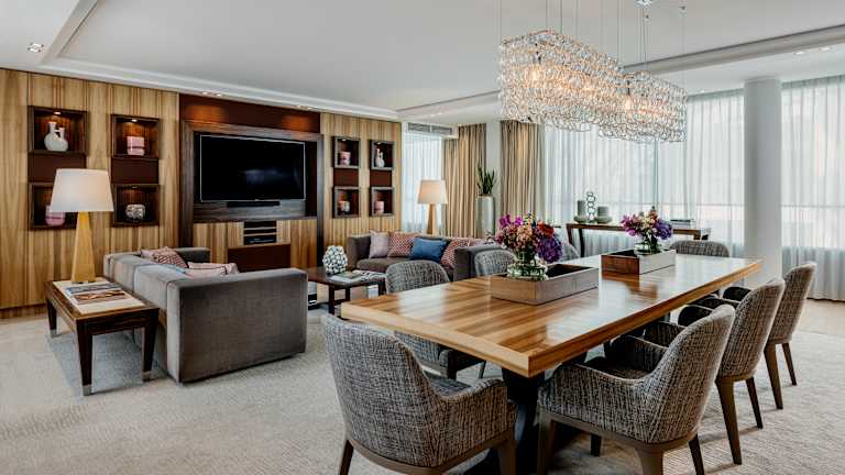 Freuen Sie sich auf 287 zeitgemäß gestaltete Räume, luxuriöses Ambiente und edle Materialien in den Suiten und Hotelzimmern des Düsseldorfer Hotels. Sie blicken entweder auf die prachtvolle Königsallee, auf die Stadt oder das lichtdurchflutete Atrium, das mit seinen 40 Metern Höhe den architektonischen Mittelpunkt des Hotels darstellt. Ganz nach Ihren Bedürfnissen können Sie bei Ihrer Buchung unter verschiedenen Hotelzimmern und Suiten wählen.
