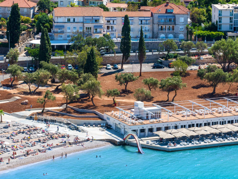 Das Hotel Komodor liegt auf der Halbinsel Lapad in Dubrovnik, nur 50 m vom Strand entfernt. Die Uferstraße trennt das Hotel vom Strand und bietet eine ideale Lage für erholsame Tage am Meer. Die historische Altstadt von Dubrovnik ist nur wenige Kilometer entfernt und bietet eine Fülle von kulturellen Sehenswürdigkeiten.