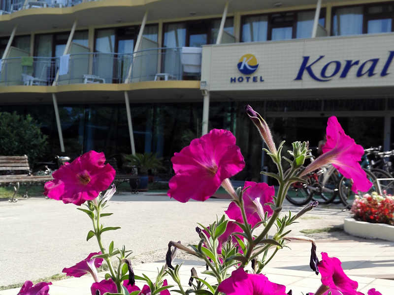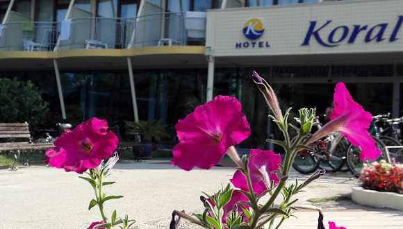 "Das Hotel Koral befindet sich in St. Konstantin und Elena, einem beliebten Ferienort an der bulgarischen Küste. Es liegt in einem natürlichen Park, nur 500 m vom Strand entfernt. In der Nähe des Hotels gibt es das Kloster ""Hll. Konstantin und Helena"" sowie ein Thermalbad. Die Einkaufspromenade ist ebenfalls nur 300 m entfernt. Der Flughafen Varna ist ca. 16 km entfernt."
