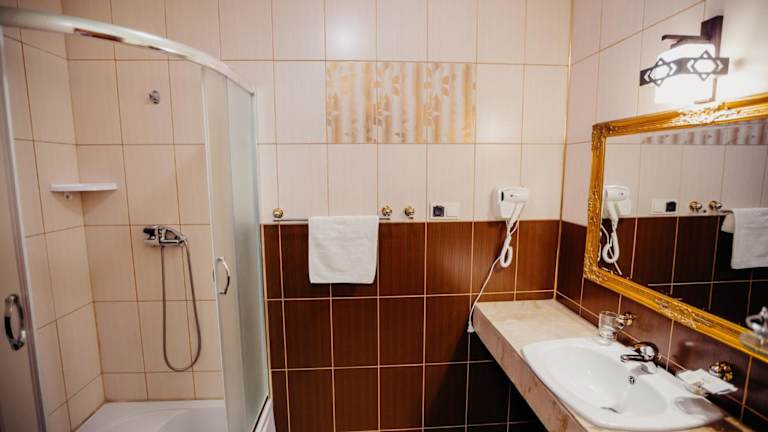 Die Zimmer im Hotel Korczowa sind mit einem eigenen Badezimmer, Bettwäsche, Handtüchern und einem Schreibtisch ausgestattet.