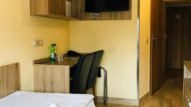 Die Zimmer im Hotel Korona sind komfortabel eingerichtet und bieten Annehmlichkeiten wie einen Kleiderschrank und einen Flachbild-TV. Bettwäsche und Handtücher werden gestellt, um Ihren Aufenthalt so angenehm wie möglich zu gestalten.