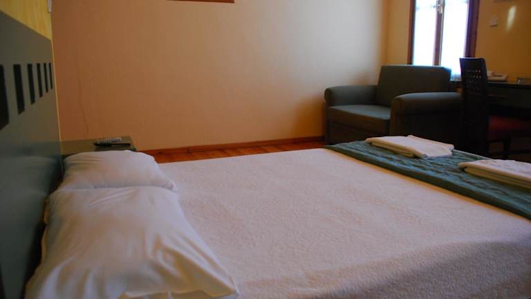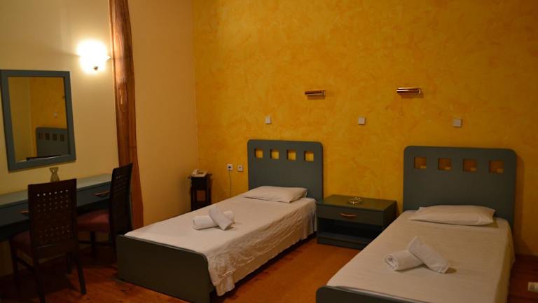 Die Zimmer im Hotel Koukouli sind traditionell eingerichtet und verfügen über eine gemütliche Atmosphäre. Die erdigen Farbtöne und die grünen Holzmöbel schaffen eine warme und einladende Umgebung. Jedes Zimmer ist mit Klimaanlage, TV, Kühlschrank und eigenem Bad ausgestattet. WLAN ist kostenlos verfügbar. Einige Zimmer bieten zudem einen schönen Blick auf die Stadt.
