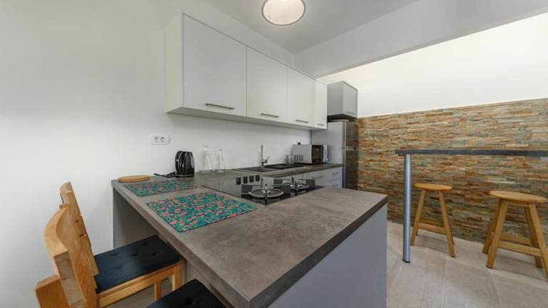 Jede Wohneinheit ist mit Klimaanlage, eigenem Badezimmer sowie einer Küche ausgestattet, die Kühlschrank, Geschirrspüler und Ofen enthält.