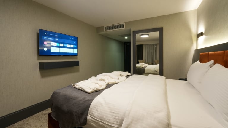 Die Zimmer im Hotel Kurucesme Business sind klimatisiert und ausgestattet mit einem Kingsize-Bett, einem Schreibtisch, einem Wasserkocher, einem Kühlschrank, einem Safe sowie einem Flachbild-TV. Ein eigenes Badezimmer mit Bidet ist ebenfalls vorhanden. Die Zimmer bieten zudem WiFi-Zugang ohne Gebühr und sind als Nichtraucherzimmer verfügbar. Auf Anfrage können Zustellbetten bereitgestellt werden.