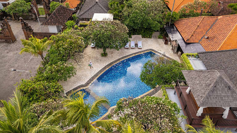Das Kuta Seaview Boutique Resort liegt günstig am berühmten langen Sandstrand von Kuta. Hier können Sie nicht nur wunderschöne Sonnenuntergänge erleben, sondern auch das bekannte Nachtleben der Umgebung genießen. Das Resort befindet sich in der Nähe des Kunstmarkts von Kuta und des Einkaufszentrums Kuta. Den internationalen Flughafen Ngurah Rai erreichen Sie in nur 15 Fahrminuten.