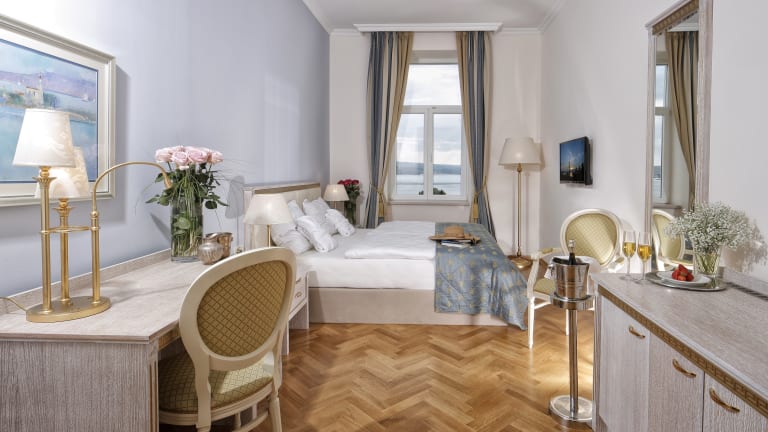 Die 114 Zimmer und Suiten des historischen Kvarner Palace vereinen auf elegante Weise klassischen K&K-Schick mit modernem 4-Sterne-Komfort. Mit erlesenen Stoffen, stilvollen Accessoires und einer zeitlosen Einrichtung schaffen sie eine Atmosphäre von edlem Luxus und Geborgenheit. Jedes Zimmer ist mit einem Bad oder einer Dusche/WC, Fön, Leihbademantel und Slippers sowie einer Tragetasche mit Badetüchern (jeweils 2 Stück pro Person) ausgestattet. Zusätzlich bieten alle Wohneinheiten Annehmlichkeiten wie Klimaanlage, Heizung, Telefon, Radio, Sat-TV mit internationalen Programmen, WLAN, Safe und Minibar. Die neu eröffnete Wellnessvilla umfasst 36 stilvolle Zimmer, die mit einem atemberaubenden Meerblick und einer Loggia ausgestattet sind, die im Sommer Schatten spendet und in jeder anderen Jahreszeit Schutz bietet. Pünktlich zum 130-jährigen Hotel-Jubiläum im Jahr 2025 wird der neue Komplex fertiggestellt sein. Freuen Sie sich auf einen Meerwasser-Innen- und Outdoorpool sowie auf einen großzügigen Spa mit Saunaoase. Die faszinierende Kultur und die heilsame Naturlandschaft der Region werden künftig verstärkt in unser Angebot integriert, unterstützt durch interessante Gast-Tutoren, die spannende Programme anbieten. Dabei bleibt alles, was unsere Gäste schätzen, natürlich erhalten.