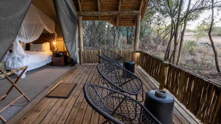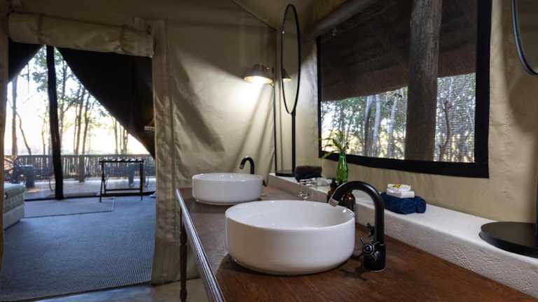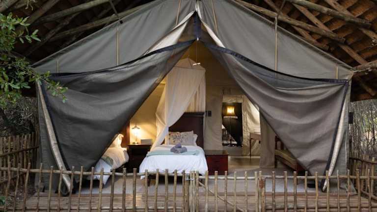 In der Hauptlodge können Sie sich in der Gemeinschaftslounge entspannen und im Essbereich Ihre Mahlzeiten genießen. Das traditionelle Boma bietet Ihnen die Möglichkeit, unter freiem Himmel zu speisen und die köstlichen Gerichte zu probieren. Nach einem aufregenden Tag können Sie an der Bar einen Drink genießen und den Abend am Lagerfeuer ausklingen lassen.