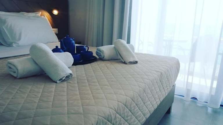 Die Zimmer im Hotel Kyma sind komfortabel eingerichtet und verfügen über eine Klimaanlage, Heizung und kostenloses WLAN. Von Balkon oder Terrasse aus können die Gäste den schönen Meerblick genießen. Die Zimmer sind mit einem Doppelbett, einem Kühlschrank, einem Telefon und einem TV-Gerät ausgestattet. Im Badezimmer gibt es eine Dusche und einen Haartrockner.
