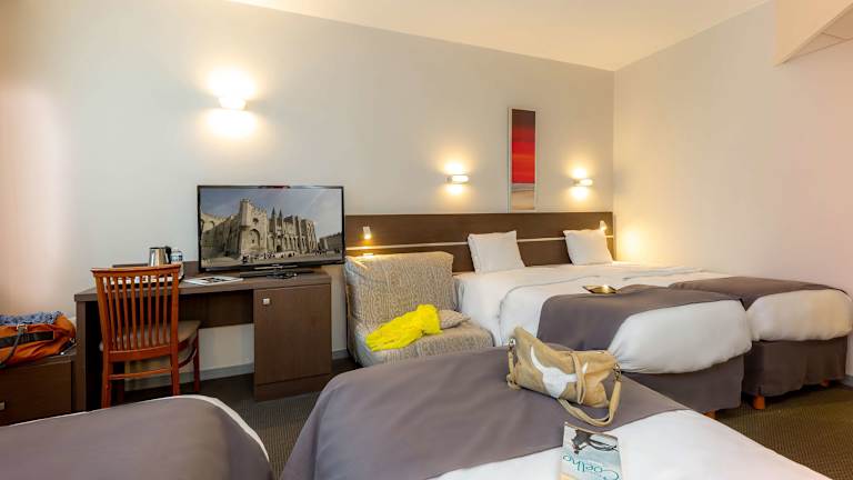 Das Kyriad Avignon - Palais des Papes verfügt über 38 Nichtraucherzimmer auf 5 Etagen, die bequem über einen Aufzug erreichbar sind. Das freundliche Personal an der Rezeption steht Ihnen gerne zur Verfügung und bietet Ihnen einen angenehmen Aufenthalt. Das Hotel bietet verschiedene Annehmlichkeiten wie Gepäckaufbewahrung, einen Safe und kostenfreies WLAN. Sie können auch Ausflüge am Tourenschalter buchen. Das Hotel verfügt über rollstuhlgerechte Einrichtungen und bietet Parkplätze für Gäste an.
