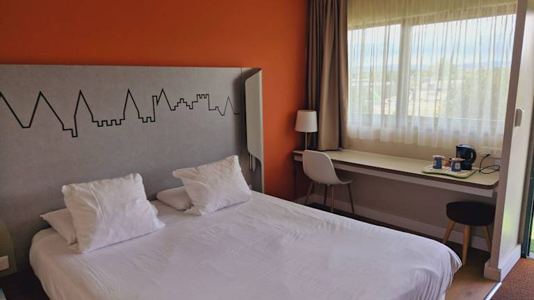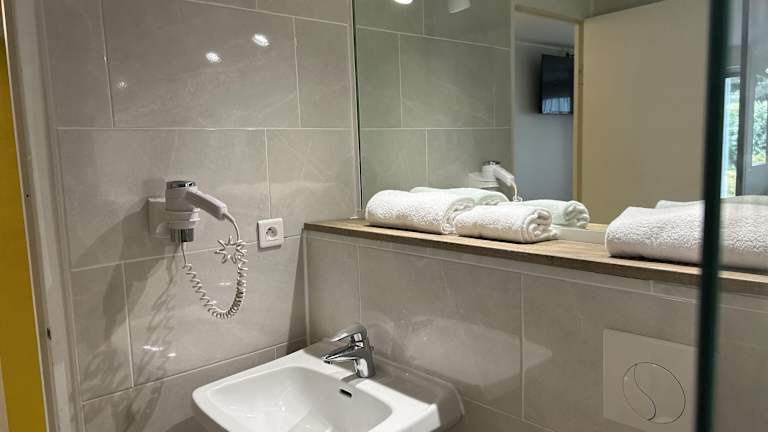 Das Hotel Kyriad Carcassonne - Aéroport bietet 19 Einzel- und 60 Doppelzimmer auf 3 Etagen, die bequem mit einem Aufzug erreichbar sind. Die Zimmer sind klimatisiert und verfügen über einen Balkon, der zum Verweilen einlädt. Zur Standardausstattung gehören ein Doppelbett, ein Schreibtisch, eine Tee-/Kaffeemaschine, ein Telefon mit Direktwahl, ein TV-Gerät mit Satelliten-/Kabelempfang und kostenfreies WLAN. Das Badezimmer ist mit einer Dusche oder einer Badewanne und einem Haartrockner ausgestattet. Rollstuhlgerechte Zimmer mit barrierefreiem Bad sind ebenfalls verfügbar.