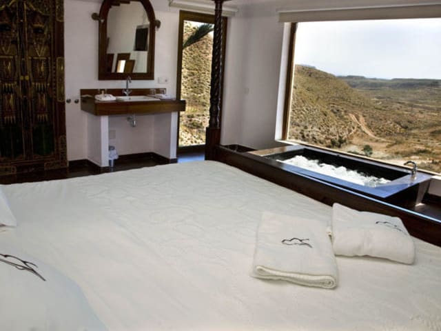 Das Hotel La Almendra y El Gitano liegt in der Wüste und ist etwa 4,5 km vom Zentrum von Agua Amarga entfernt. Diese abgeschiedene Lage bietet Ihnen Ruhe und Frieden abseits vom Trubel der Stadt. Der Naturpark Cabo de Gata ist ebenfalls in der Nähe, so dass Sie die Schönheit der umliegenden Natur erkunden können. Das Meer ist nur 5 km entfernt und bietet Ihnen die Möglichkeit, sich zu entspannen und die Sonne zu genießen.