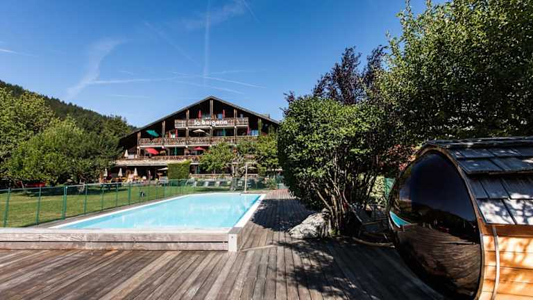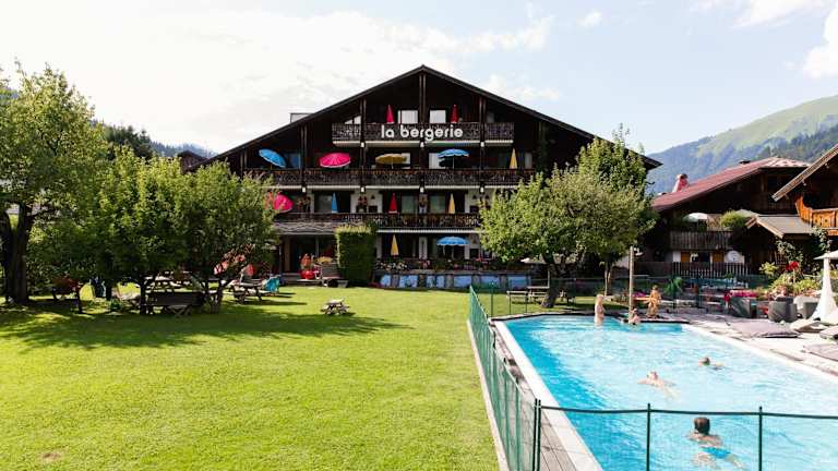 Das Hotel befindet sich im Herzen des Marktes von Morzine, in einer Gartenlandschaft mit einem beheizten Außenpool. In der Umgebung liegen Ski-Gebiete, eine Skischule sowie Rad- und Golfmöglichkeiten. Die A40 Autobahn und der Bahnhof Cluses sind jeweils 30 km entfernt, während der Flughafen Annecy 70 km entfernt ist.