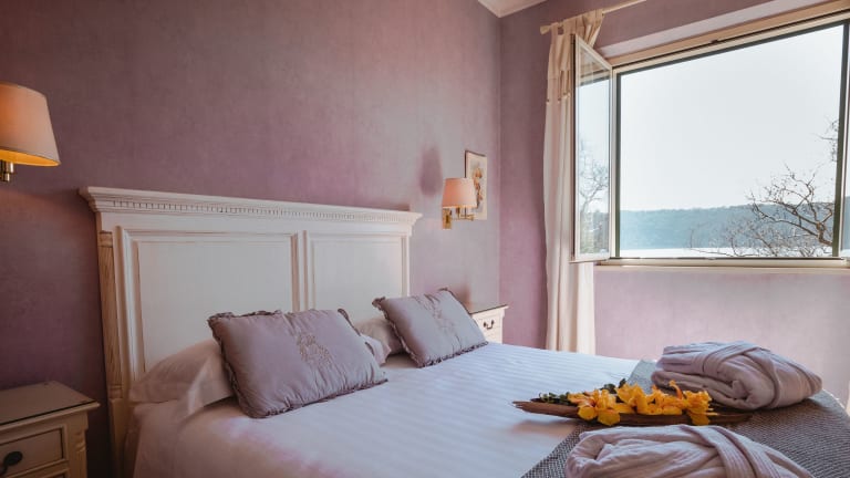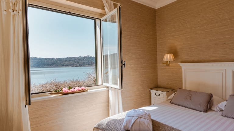 Das Hotel La Culla Del Lago befindet sich in ruhiger Lage, nur 5 Fahrminuten von der Innenstadt von Castelgandolfo entfernt. Die Nähe zum See und der private Strand bieten Ihnen die Möglichkeit, die Schönheit der Natur in vollen Zügen zu genießen. Von der Sonnenterrasse aus haben Sie einen herrlichen Blick auf den See und können die Ruhe und Entspannung genießen.